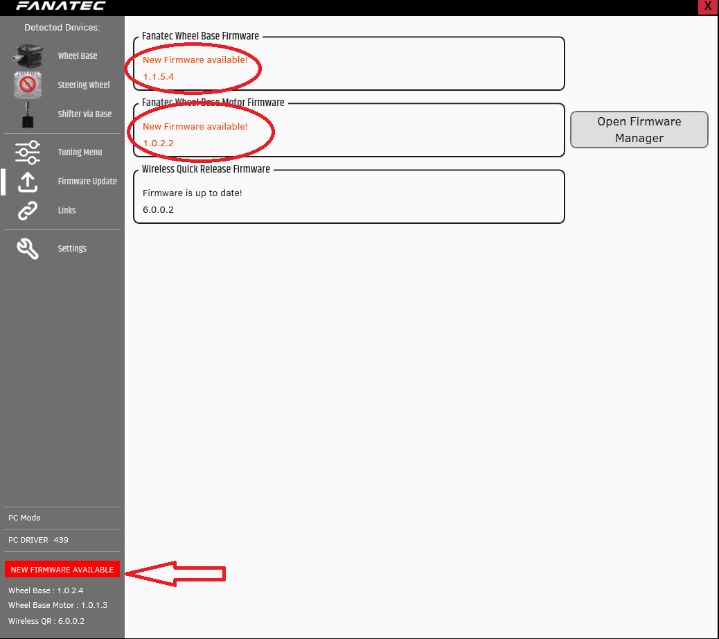 6. 최신 펌웨어 업데이트가 가능한 경우 왼쪽 하단 정보에 표시됩니다 .